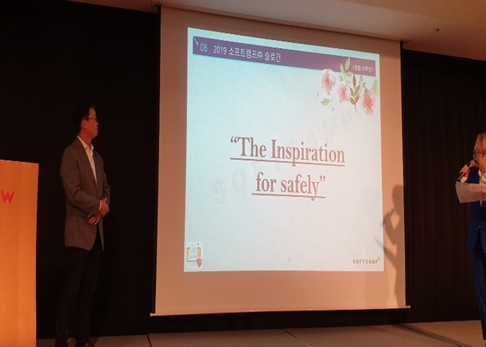 우리 소프트캠프는 보안을 넘어서서 고객들에게 안전함에 대한 영감을 주고자 합니다" 라며 의미 설명을 해주셨습니다.