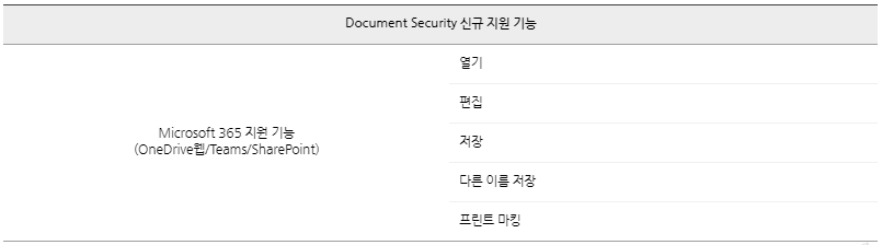 Microsoft Cloud App에서의 소프트캠프 Document Security는 아래와 같은 신규 기능을 제공합니다.