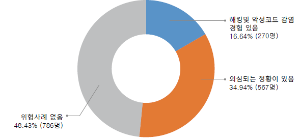 최근 KISA에서 진행한 재택근무 보안 실태 설문조사 결과, 재택근무 시 사이버위협을 받은 적이 있다는 응답자가 270명(해킹 및 악성코드 감염 경험, 16.64%)이었으며, 의심되는 정황을 겪은 적이 있는 응답자가 567명(34.94%)에 달해 재택 근무자 절반 이상이 보안 위험을 경험한 것으로 나타났습니다. 이렇듯 새로운 근무 환경에서 ‘보안’을 유지하는 것은 무엇보다 중요한 과제라고 할 수 있습니다.