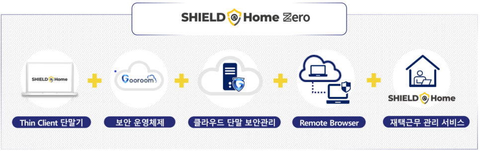 기업 및 임직원의 규모가 큰 기업일수록 개개인이 소유한 다양한 개인용 PC를 통한 재택근무 시행은 여러 가지 컴플라이언스 문제와 마주합니다. SHIELD@Home Zero는 임직원의 개인 PC가 아닌 구름 OS를 탑재한 노트북 기반의 전용 단말기 제공을 통해 개개인 PC가 최신 OS를 유지하는지, 패치는 정상적으로 되었는지 등의 이슈를 일일이 관리하고 통제할 필요가 없어집니다. 또한 웹 브라우저를 통해 마주할 수 있는 모든 잠재적 위협으로부터 격리하는 방식으로 사이버 공격 또한 원천 차단하는 기능 등을 통해 SHIELD@Home Zero는 고도의 보안성과 높은 편의성을 제공합니다.